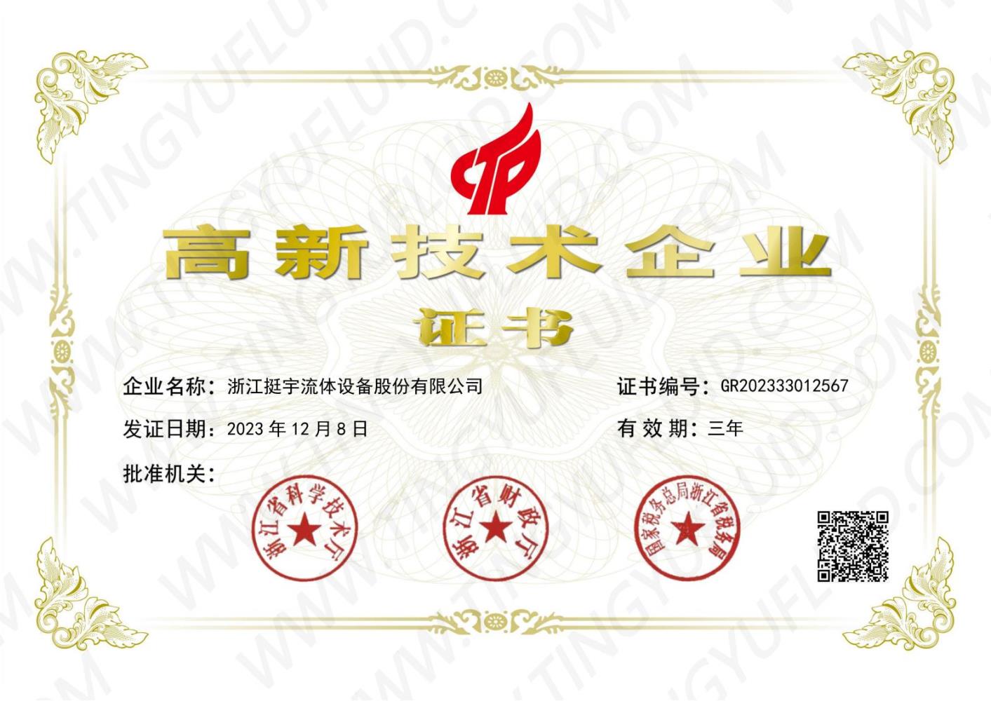高新技術(shù)企業(yè)證書