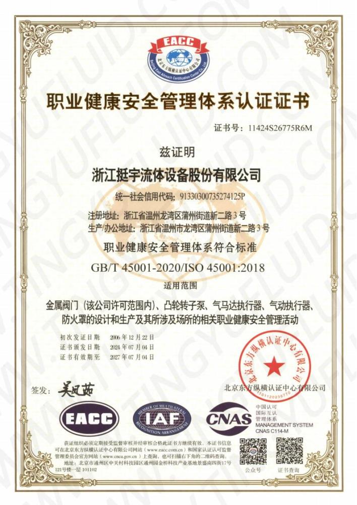 ISO45001證書